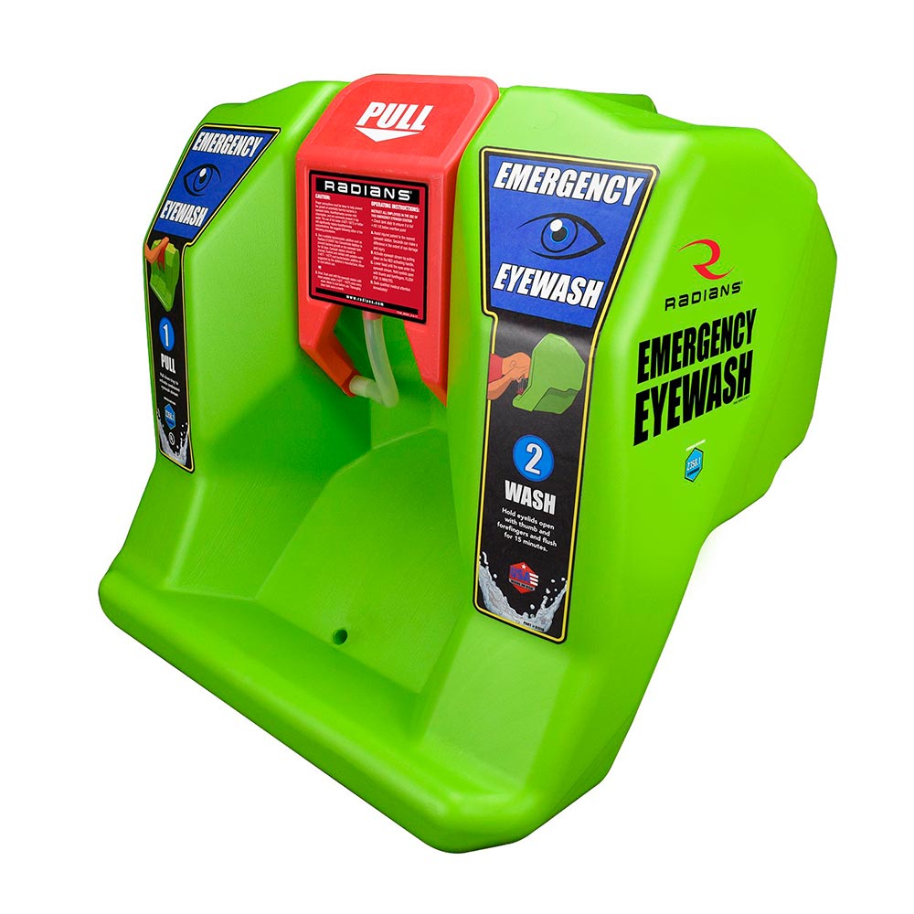 Para limpiar de manera efectiva y rápida los desechos del ojo, la estación de lavado de ojos Radians REW01116 de 16 galones. Alimentada por gravedad tiene una activación de un segundo y un paso para entregar hasta 15 minutos de flujo no perjudicial. Cumple con los estándares ANSI Z358.1-2014 para estaciones portátiles de lavado de ojos.