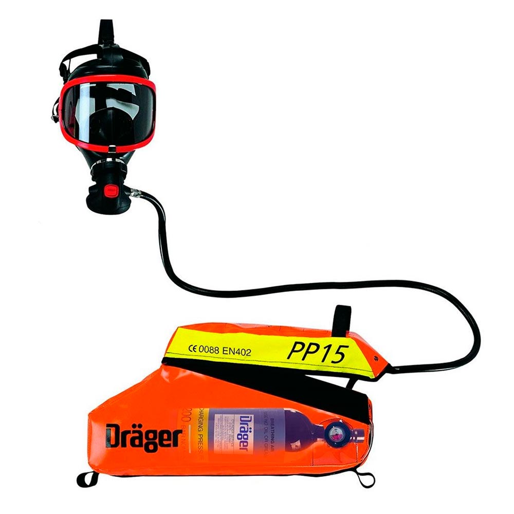 El equipo respiratorio para escapes de emergencia de flujo constante Dräger Saver CF permite un escape seguro, eficaz y sin complicaciones de entornos peligrosos. Este equipo respiratorio de flujo constante y con capucha es fácil de colocar, su funcionamiento es automático y puede utilizarse sin apenas entrenamiento previo.